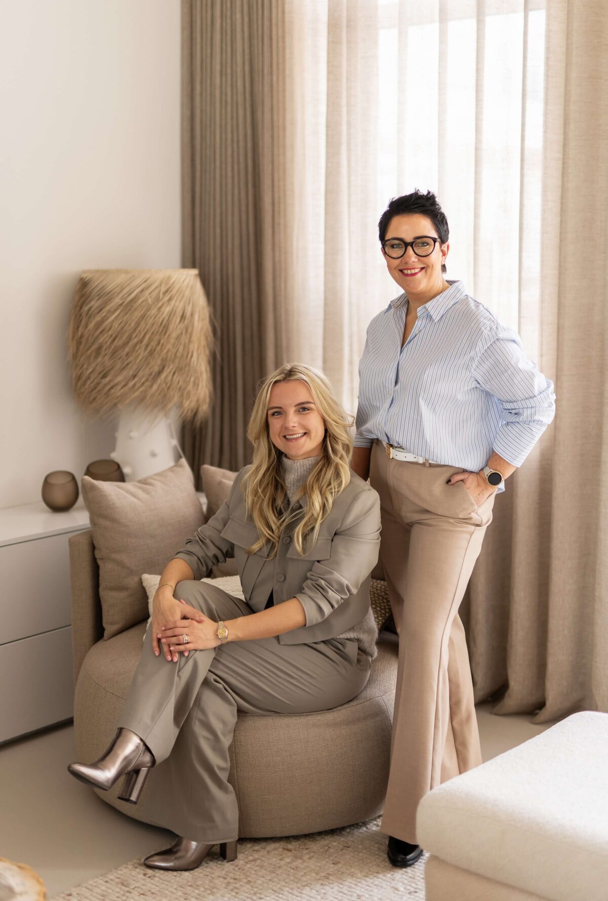 Ik ben Judith (rechts), bekend van HUIZEDOP, waarmee ik al acht jaar interieurinspiratie en woontips deel via Instagram, mijn blog en Pinterest. Mijn kracht? Sfeer en eenheid creëren in een interieur.